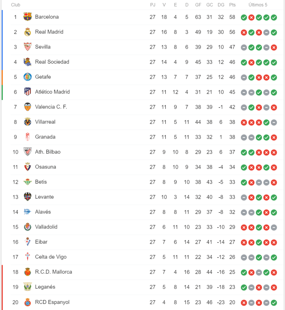 西班牙甲級聯賽 第27輪 (圖片來源:Laliga.com) 積分榜 賽後成績 圖片來源:AS.com) 西甲 第28輪 賽程 本篇資料來源 AS.com Compártelo: 分享到 X(在新視窗中開啟) X 分享到 Facebook(在新視窗中開啟) Facebook 喜歡 正在載入...